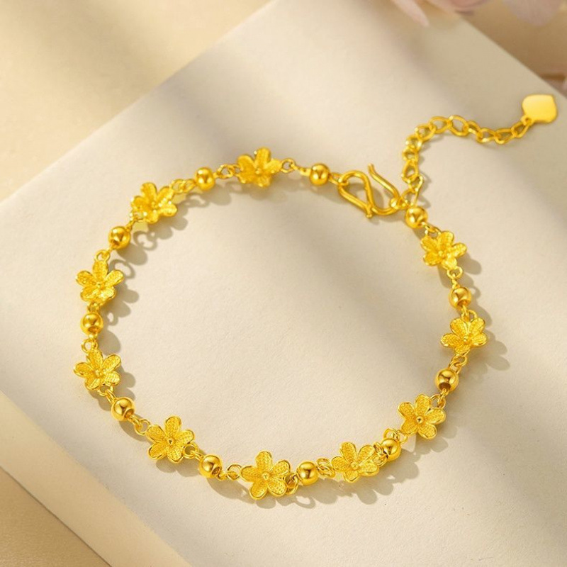 本格的な黄金のブレスレット999足の金の桃の花の手の串のファッションの百合の花の糸の花の甘い気質の純金の手の装飾