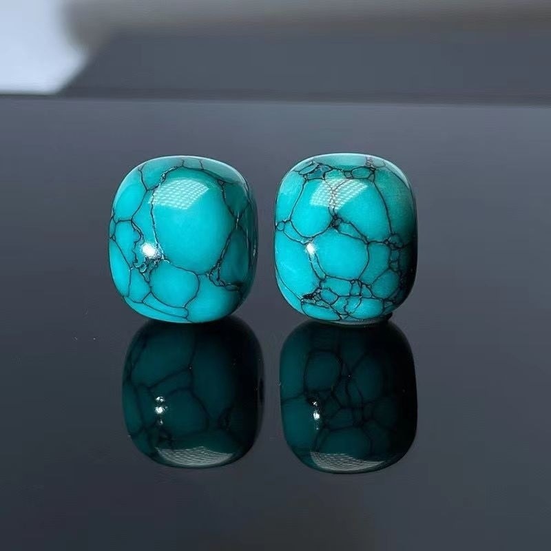 正統a級天然原鉱緑松石カード12mm古いビーズ高磁器ネット花水紋トップビーズ腰ビーズ共通.