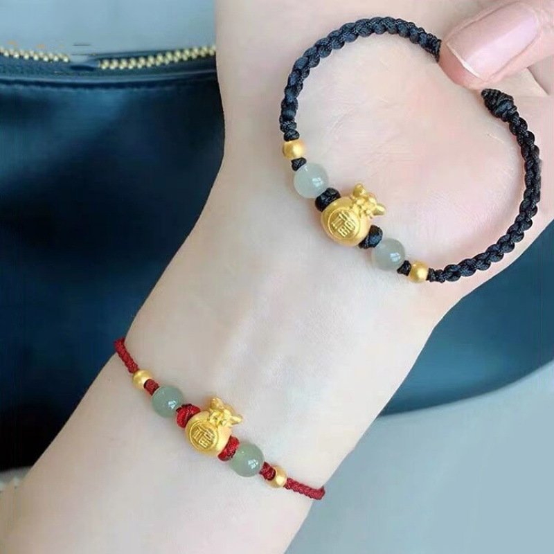 本格的な福袋の回転の玉の小さい金の玉のブレスレットの女性の本命の年の赤い手の縄の福の字の手の編みの縄の完成品