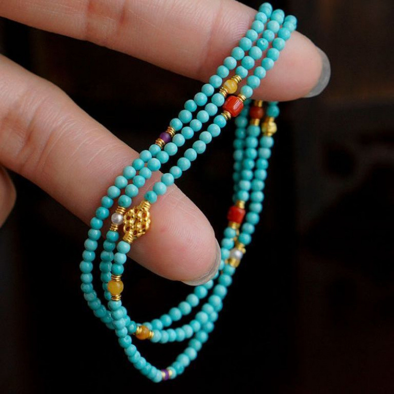 正統の小さい緑の松石の3回転の多宝のブレスレットの4mmの玉の直径の原鉱の高い磁器の緑の松の手の串の色はきれいです。