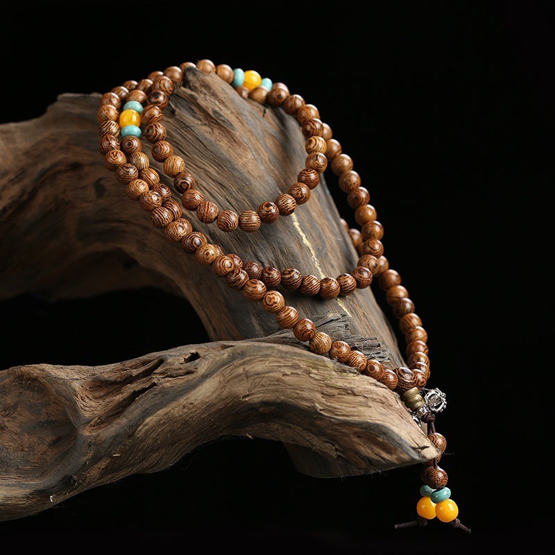 本格的なDIYアクセサリー108個の鶏の羽の木のブレスレットの木製の文は仏珠の手の串の男女のカップルの木製の6mm 0を遊びます。