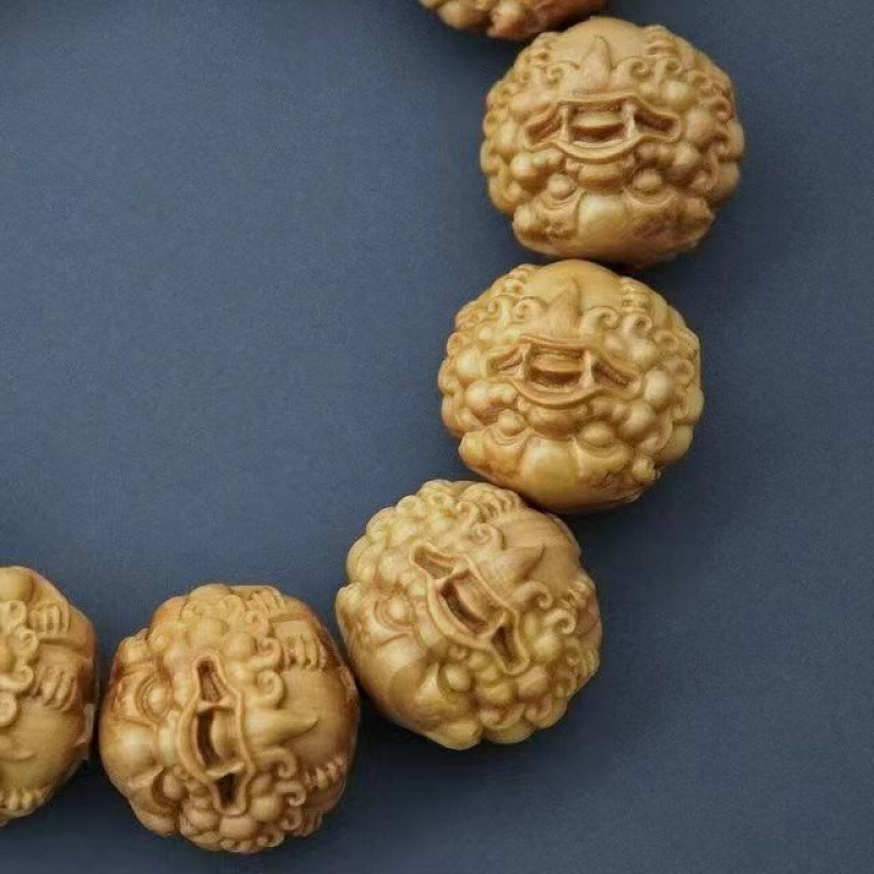 本場ins小衆寿山石象牙果覚醒ライオンの鎖インディゴ青古風二重鎖国潮高級感.