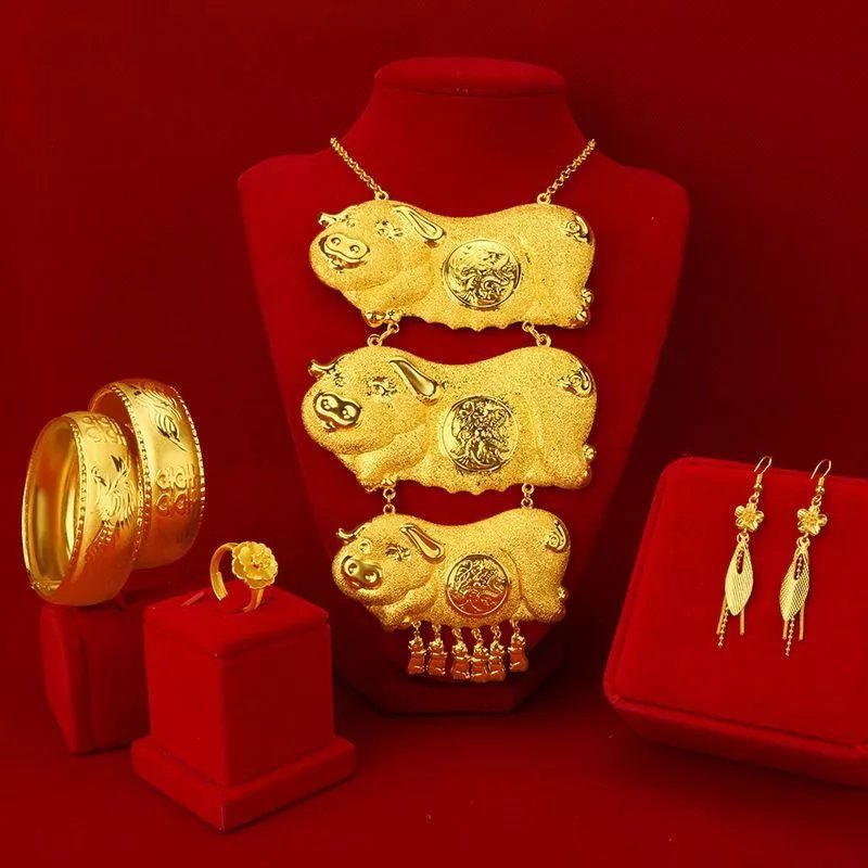 本格的な沙金ウェディングジュエリーセットの豚ブランドのネックレスのセット