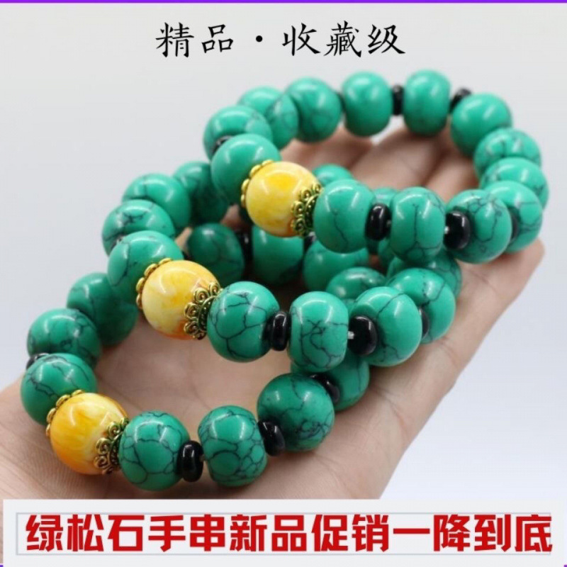 本場保真天然緑松石紅松石手串ブレスレット蜜ろう装飾金復古風桶珠鼓珠16mm
