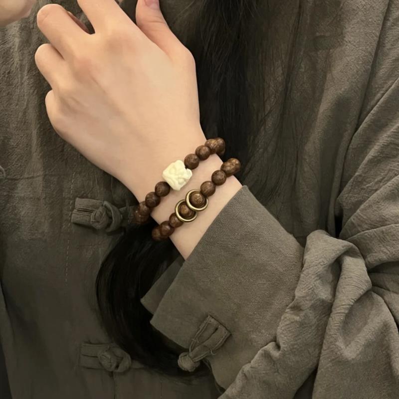 正統の新型の冷たい二重のブレスレットの木質のブレスレットの金糸の檀木は東陵の竹の節の多輪の手の串の女子学生を組み合わせます。