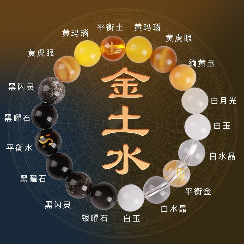 正統五行喜用金土水ブレスレット男女モデル天然水晶多宝手串衡五行天然石補水