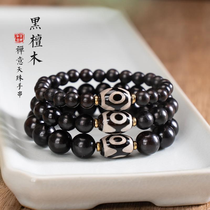 正統の黒檀の木の天珠の手串の女性の木質のホノルルの民族の風の復古の個性のカップルの金のブレスレットの装飾品の文は遊んでいます。