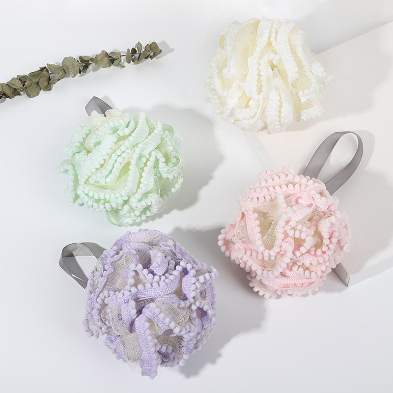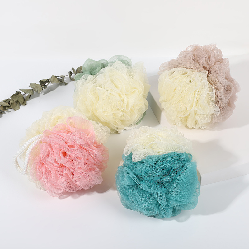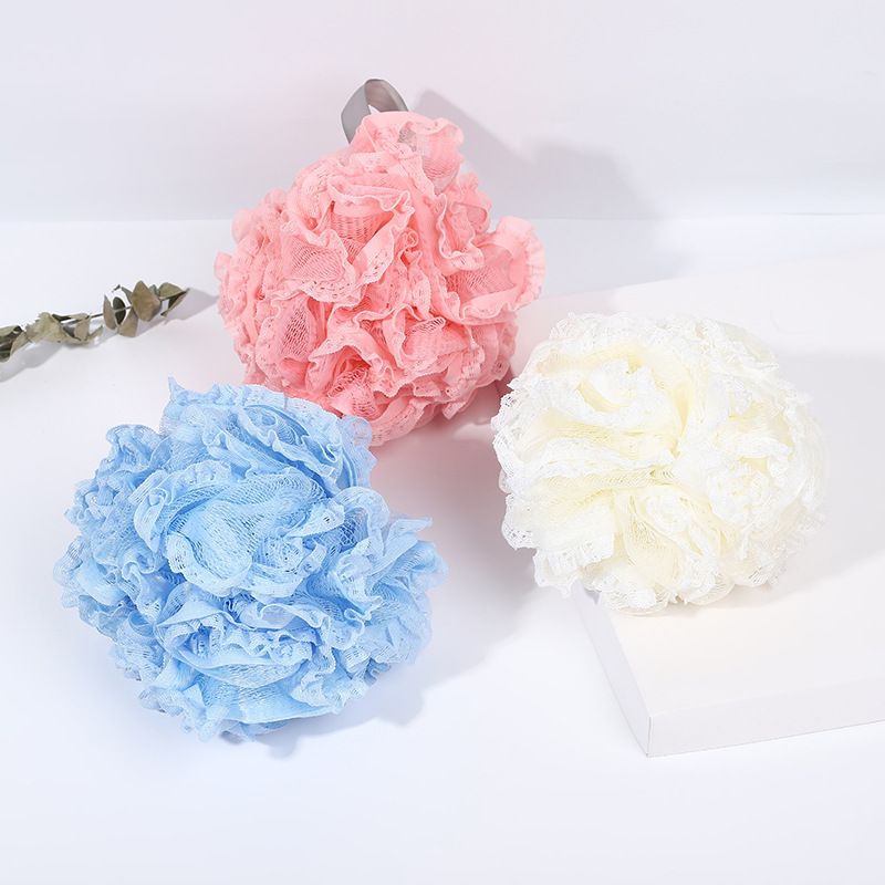 新しいレースの多色の大きいサイズのお風呂のpe柔らかいお風呂の清潔なお風呂のボールの家庭用の成人の泡立てのお風呂のボール