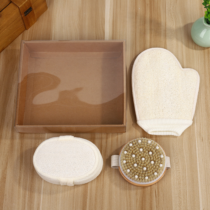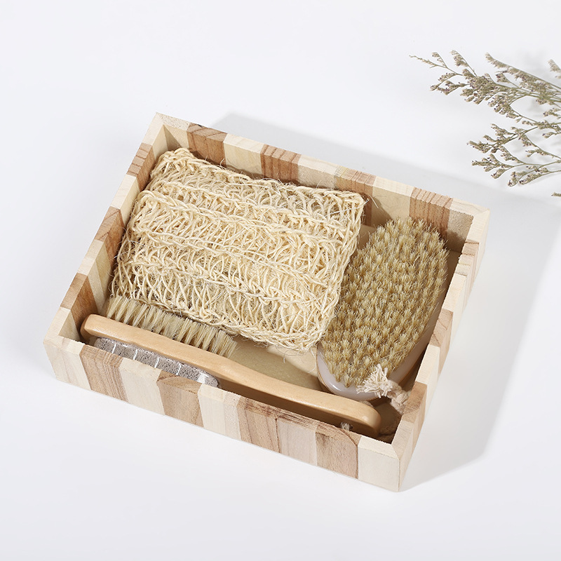 販促ギフトボックスセット深層清潔両面入浴ブラシ剣麻セット両面浮石ブラシ木箱3点セット