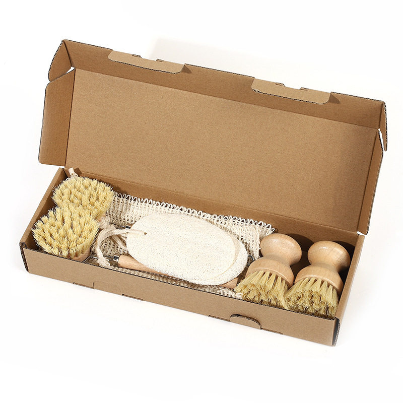新商品の鍋ブラシセットの長い柄のケヤキの鍋ブラシのメロンの組み合わせのクラフト紙セットの鍋ブラシのギフトボックス8点セット