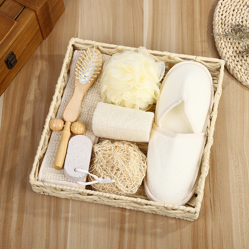 豪華家庭旅行入浴セット顔摩浴花プルオーバー深さ清潔タオル布スリッパ8点セット