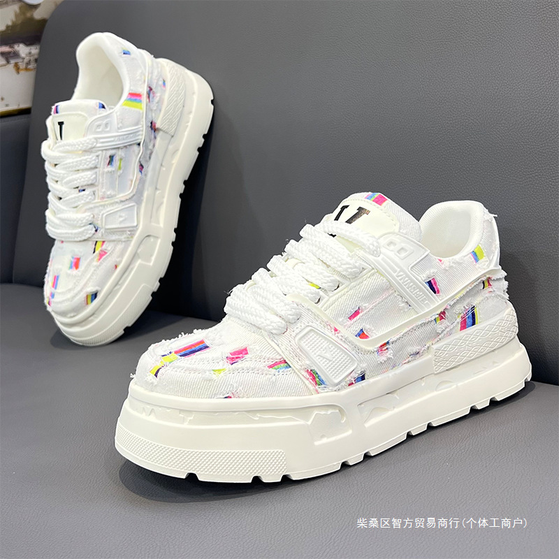 ライト高級ハイエンドキャンバスメンズシューズ 2025 夏通気性ソフトソール高さ増加穴布ダッドシューズインターネットセレブスポーツシューズ