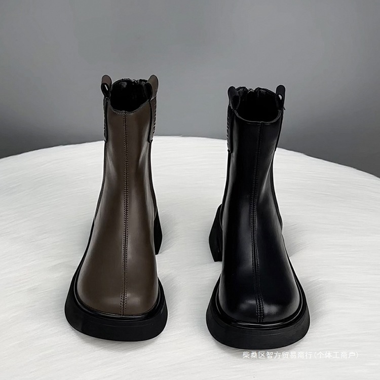 本革の爆発物のマーティンブーツの女性2025新型の春と秋の単靴の英倫風ins潮のチェルシーの厚い底のショートブーツ