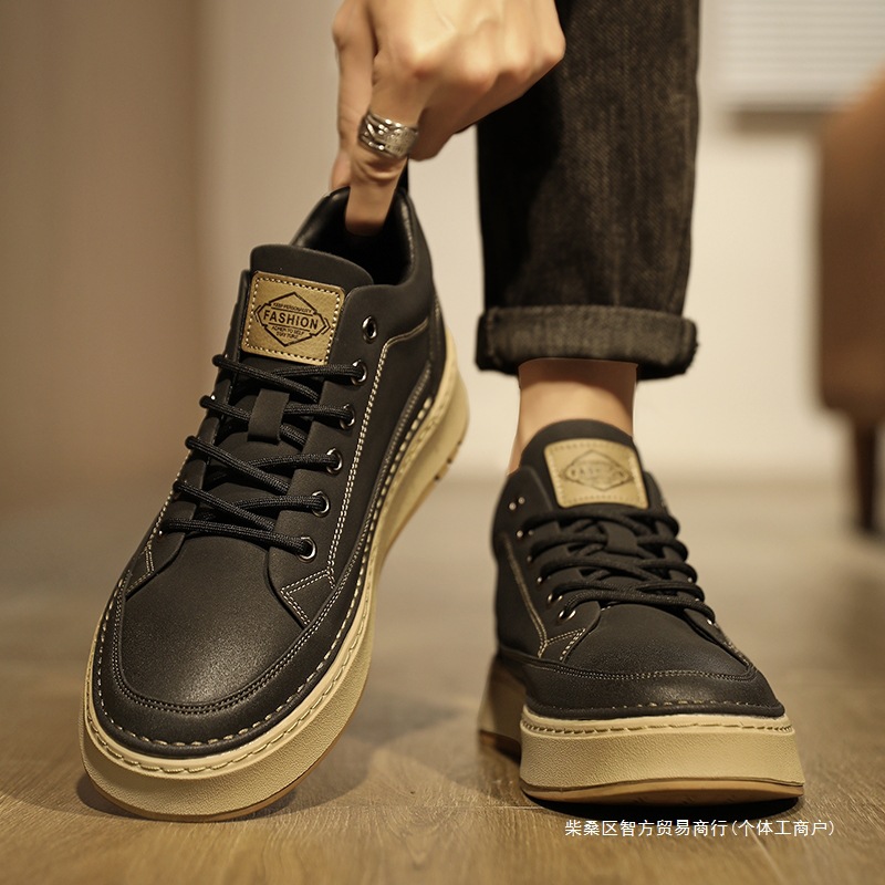 男性の靴の春の2025の新型の潮流は男性の運動のレジャーの板の靴の男性の項の黒色の皮の面の男性のファッションの靴を組み合わせます。