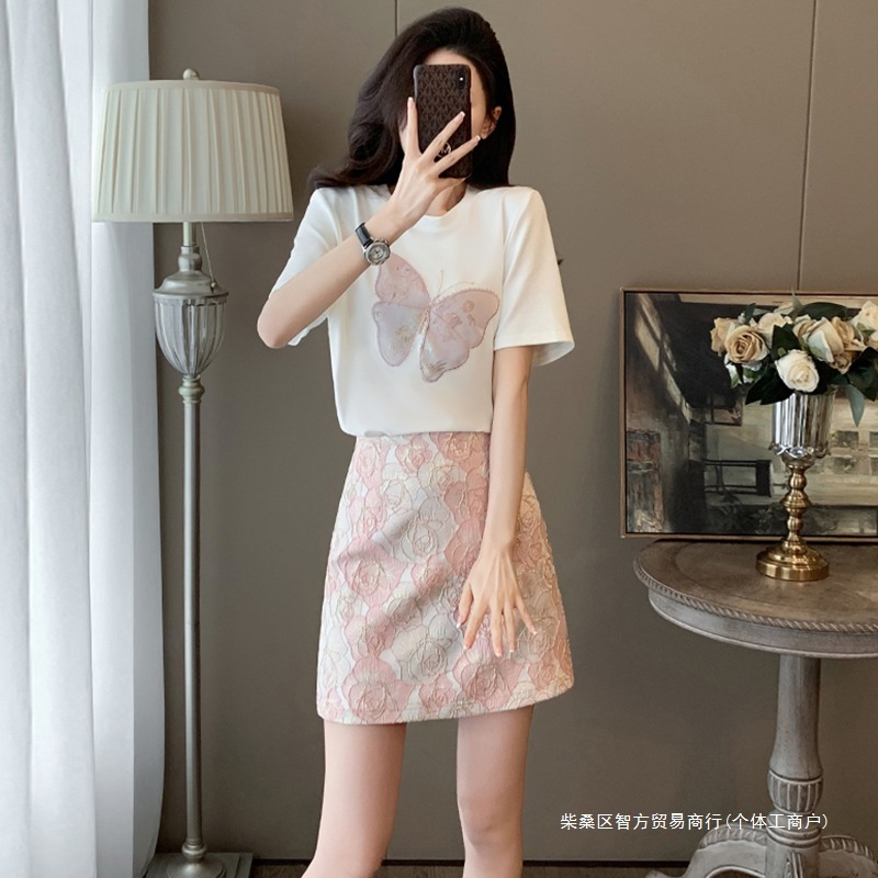 韓国ドラマのヒロインの女性用カジュアルファッションスーツ 2025 夏服年齢を減らす美しい半袖 T シャツとショートスカートの 2 点セット