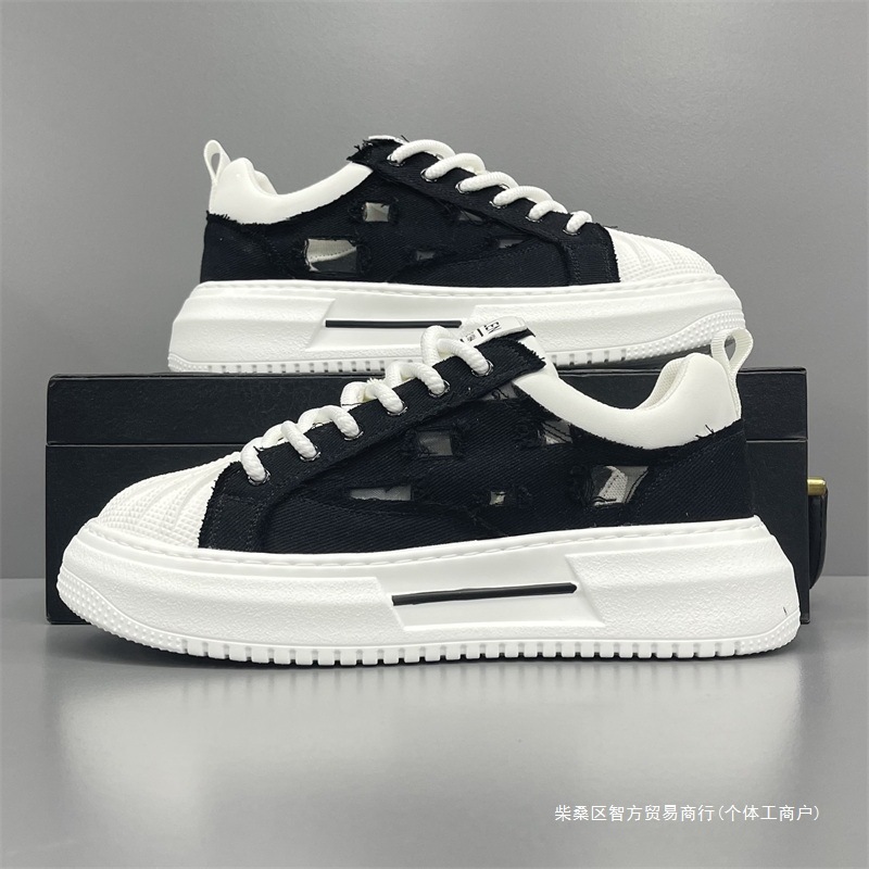 メンズシューズ 2025 新しい夏通気性厚底白靴中空多用途スポーツとレジャー男性のソフトソールキャンバスシューズ