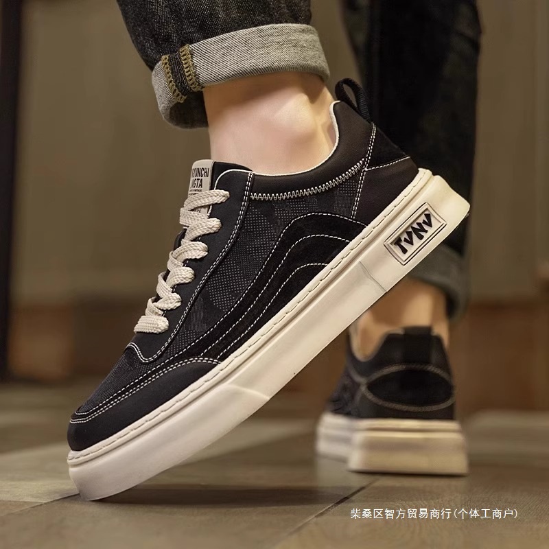 メンズシューズ春 2025 新しい通気性のあるキャンバスシューズスポーツとレジャーのロートップスニーカーメンズプリントホワイトトレンディな靴