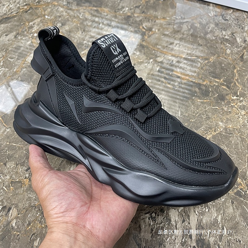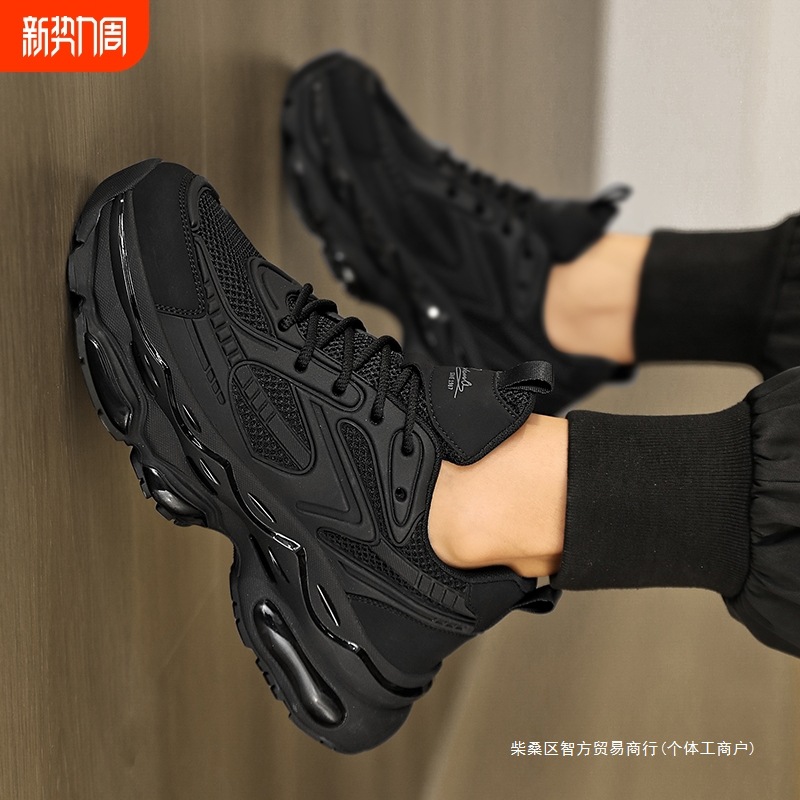 ブラックウォリアー紳士靴春ランニング衝撃吸収エアクッションスポーツシューズメンズカジュアル増加ブラックお父さん人気多用途