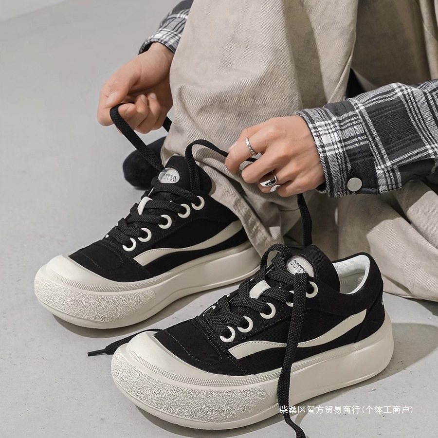 メンズシューズ 2025 新しい厚底カジュアルスニーカーニッチ醜いかわいい曲がったトレンディな靴通気性のあるハイストリートキャンバスシューズ男性と女性用