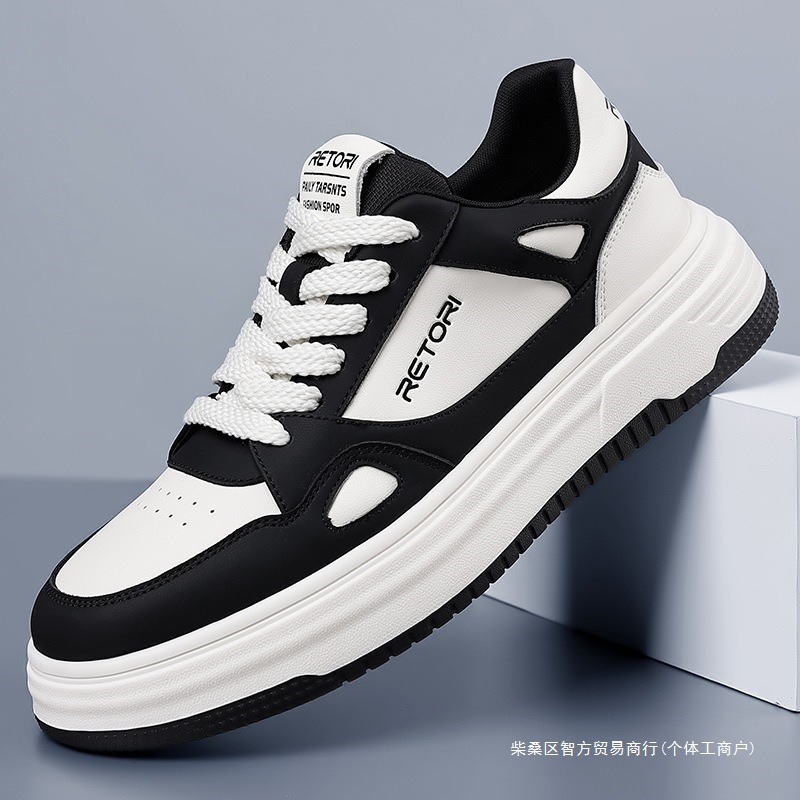 メンズシューズ 2025 秋の新作本革通気性黒と白のスニーカートレンディな多用途厚底スポーツレジャーファッション靴