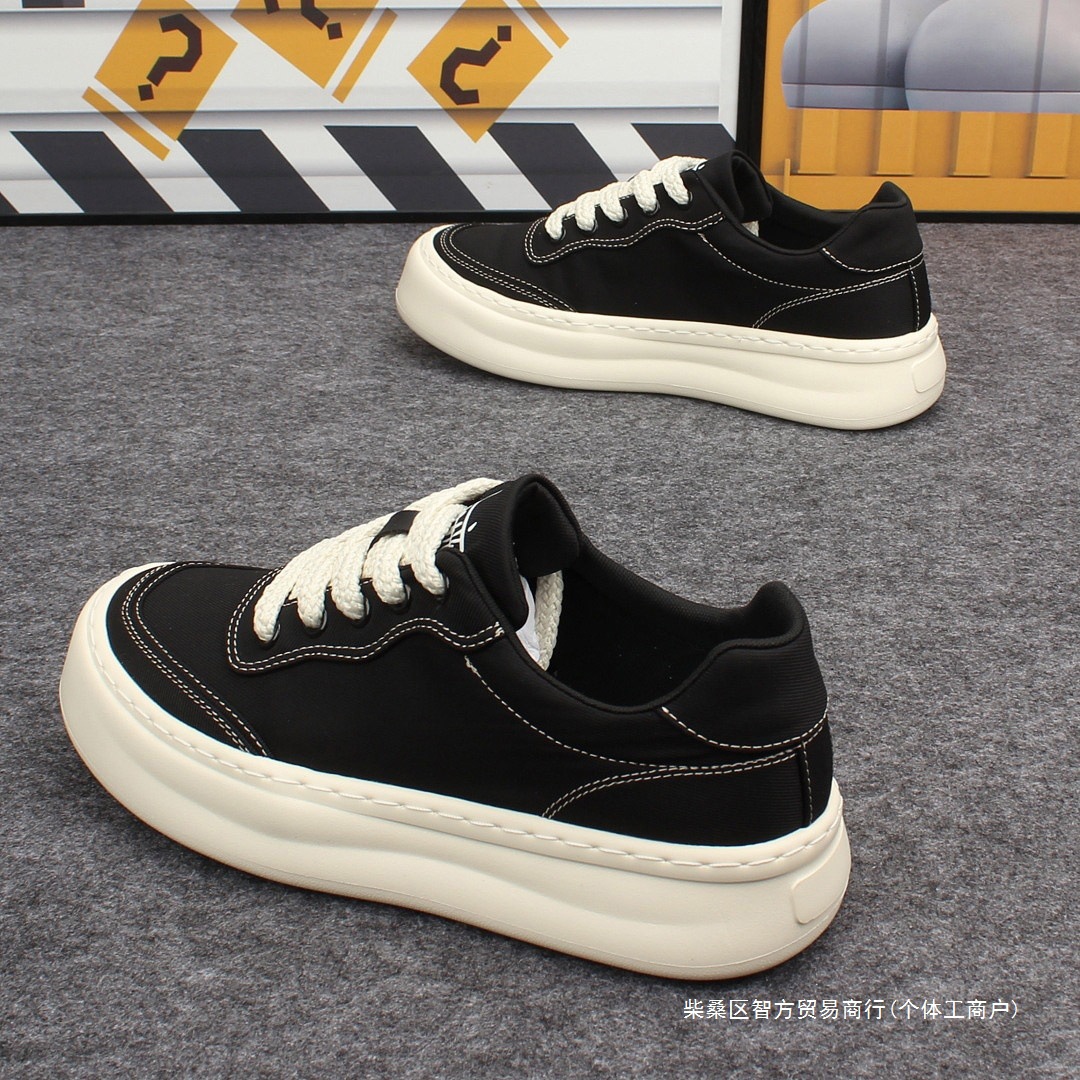 メンズシューズ 2025 新しい通気性のあるキャンバスカジュアルシューズトレンディな多用途厚底身長増加靴黒レースアップロートップ布靴