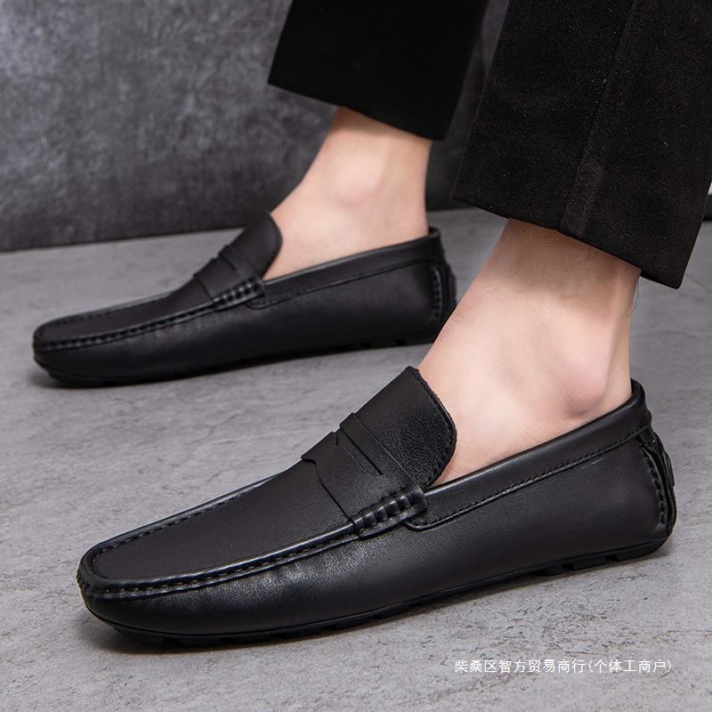 メンズシューズ 2025 新しいビーニーシューズスリッポンスリッポンメンズカジュアルレザーシューズ春と秋のカジュアルシューズ黒ソフトソール