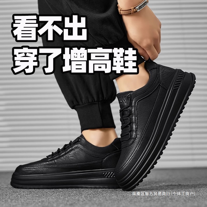 春の新作インビジブルインナー身長増加紳士靴 10 センチメートル本革白靴メンズ厚底カジュアルハイエンド黒スニーカー
