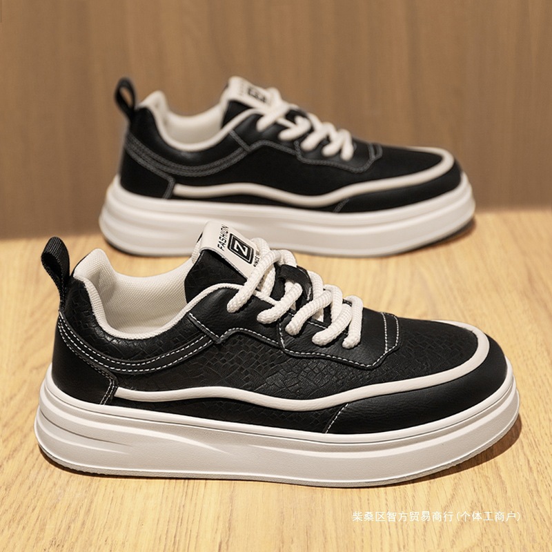 紳士靴 2025 春と秋の新作メンズ韓国スタイルスポーツとレジャー多用途本革厚底耐摩耗性軽い高級白靴