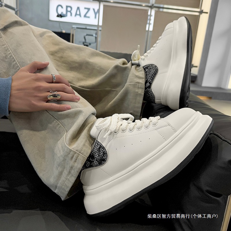 2025年春の紳士靴、新しいメンズスニーカー、通気性と多用途のスポーツカジュアルシューズ、厚底6cm、トレンディな白い靴