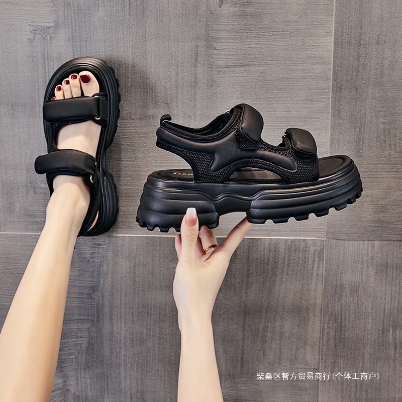 女性用厚底プラットフォームサンダル 2025 新作夏アウター本革多用途で疲れにくい旅行レジャースポーツローマ