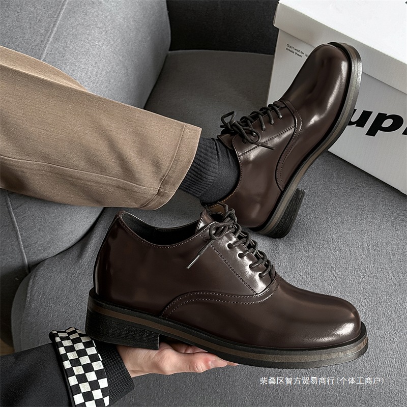 第一層牛革紳士靴 2025 春靴メンズトレンディな靴厚底軽量ファッショナブルな通気性のある本革カジュアルスニーカー