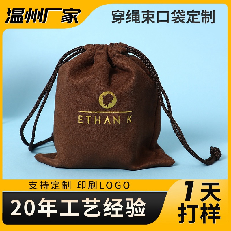 温州メーカーの束袋包装シルク印刷束口シンプルな大気宝石袋箔押し布袋加工カスタム