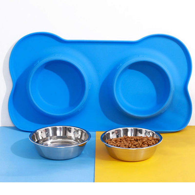 在庫一掃シリコンペット二杯の骨ステンレス二杯のペット食器犬の食事マット