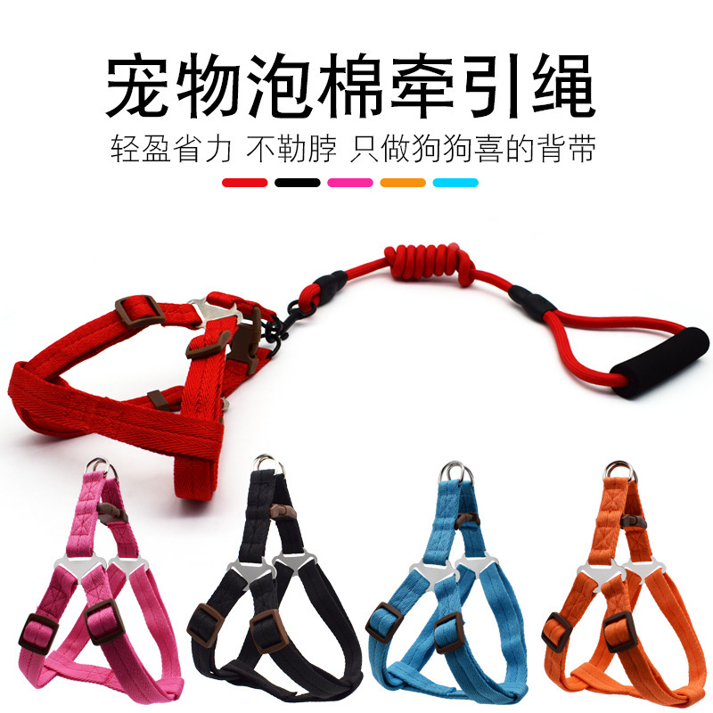 クロスボーダー耐引ラ純色の登山紐の丸い紐のペットの牽引紐は胸の帯の中の小型犬の縄の犬の鎖を調節することができます。