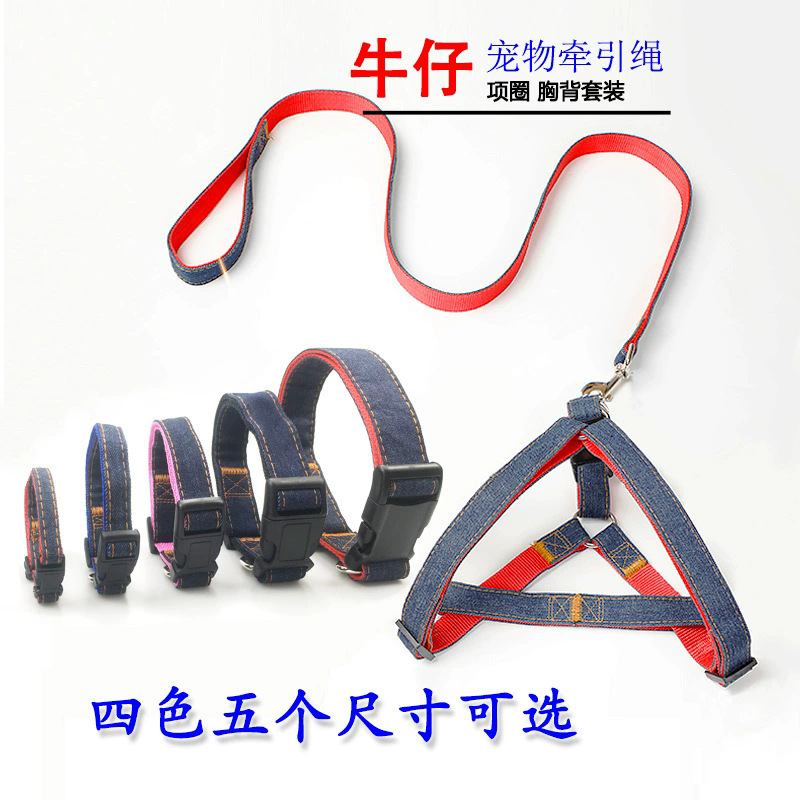 犬の牽引紐犬のチェーンの小さい中型の犬の首輪は犬のひもの耐摩耗性のデニムの胸のストラップを散歩してペット用品を牽引します。