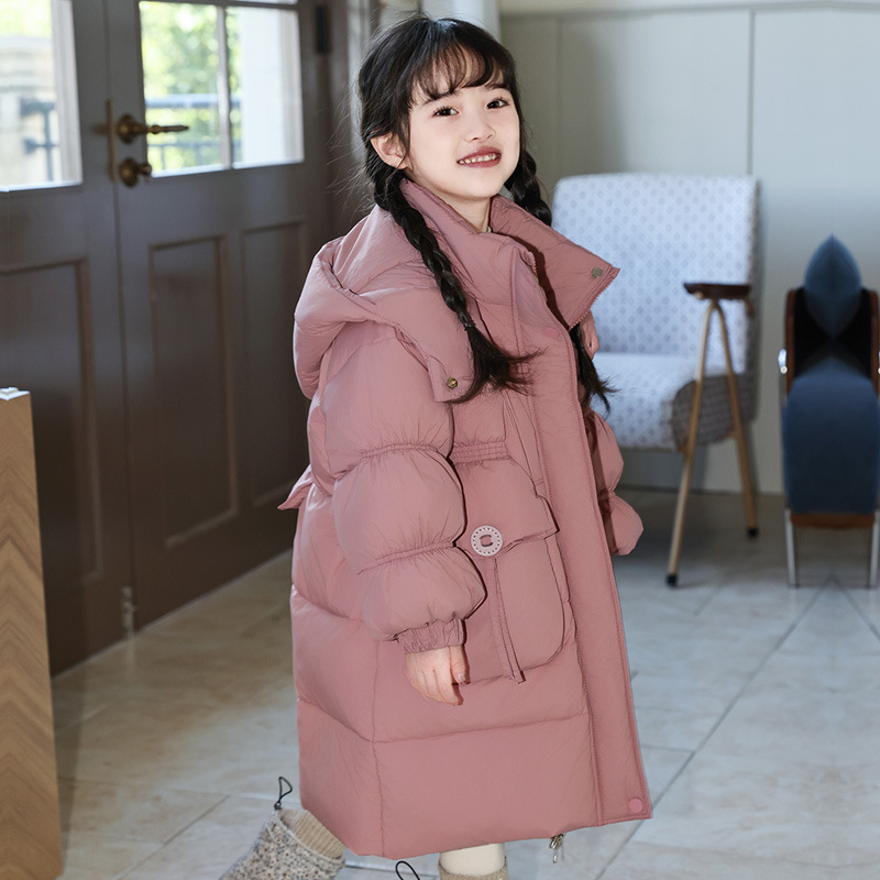 子供のダウンジャケットの女の子の中の長さの2024の新型は洋気の中の長さの韓国版の冬服の保温の子供服の潮を厚くします。