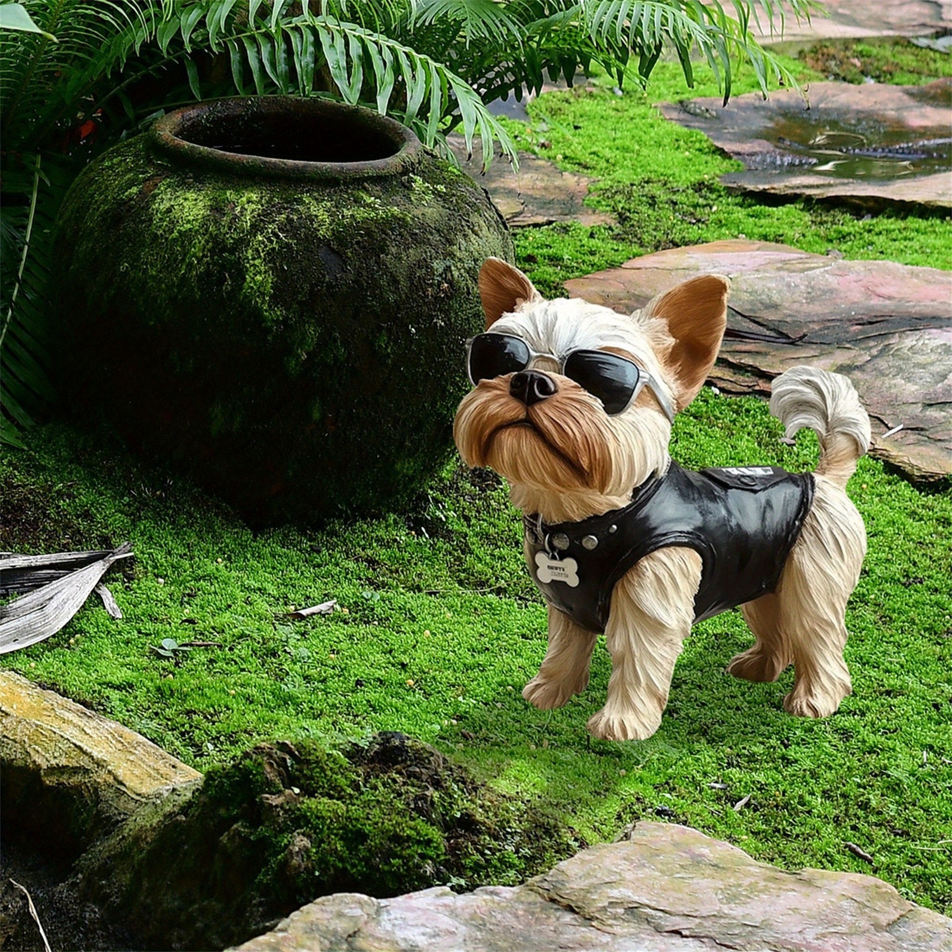 2D フラットかわいいヨークシャー テリア ガーデン サイン - ヴィンテージ スタイルの面白い動物の装飾、ファッショナブルな目