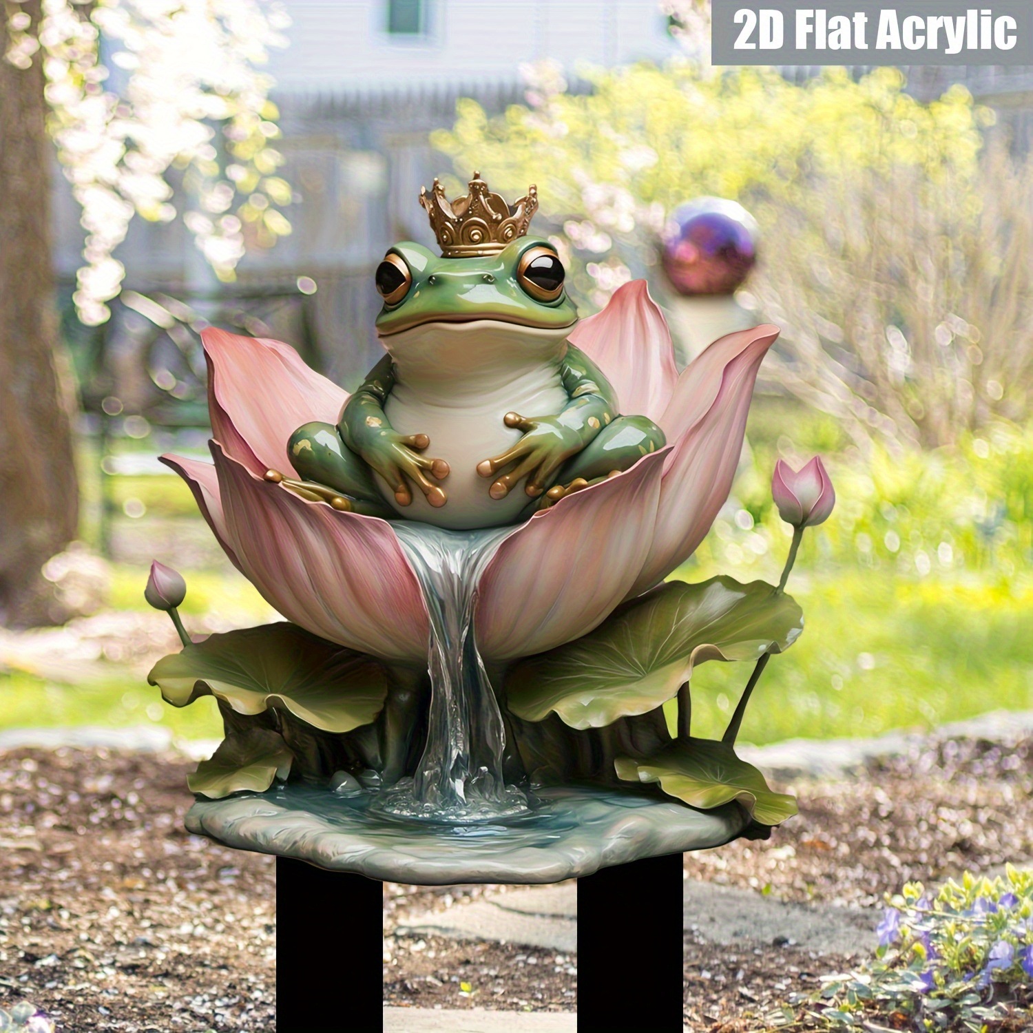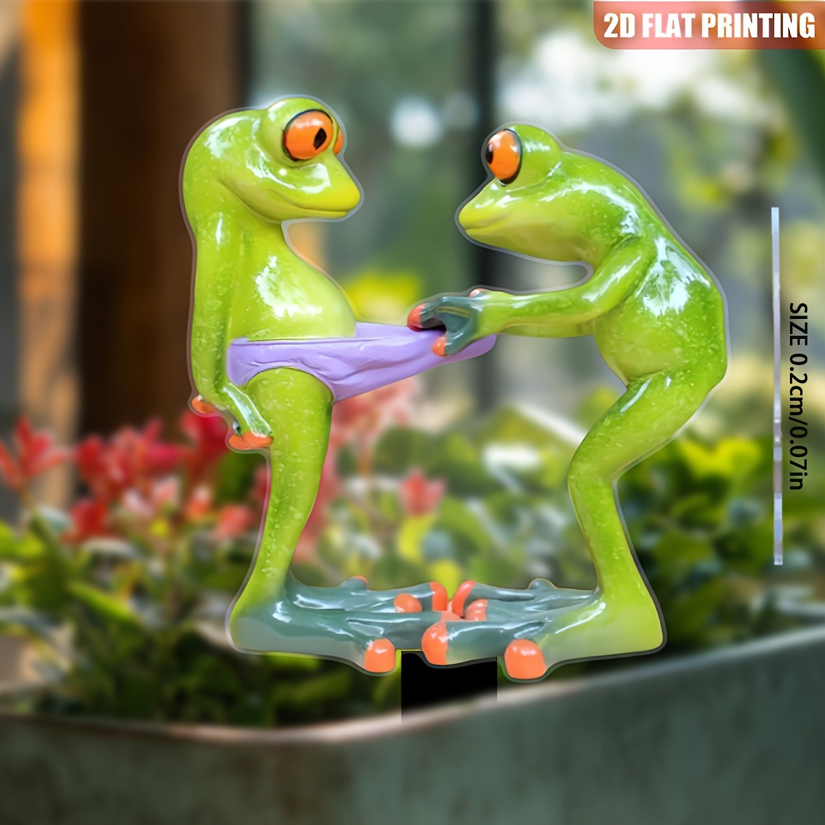 2D プレーン 2D プレーン プリント、鮮やかな 2D カエル ガーデン サイン - リアル クリスタル アウトドア