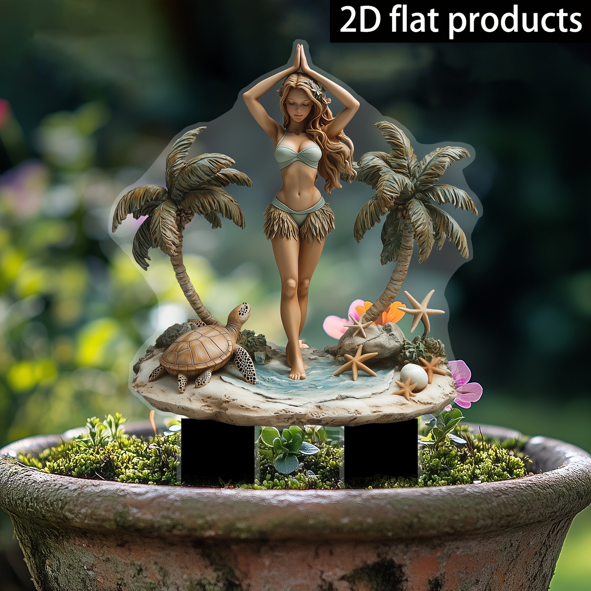 2D フラット、1 個、2D フラット、海風ヨガタイム、植木鉢装飾ロゴ、アクリルガーデン