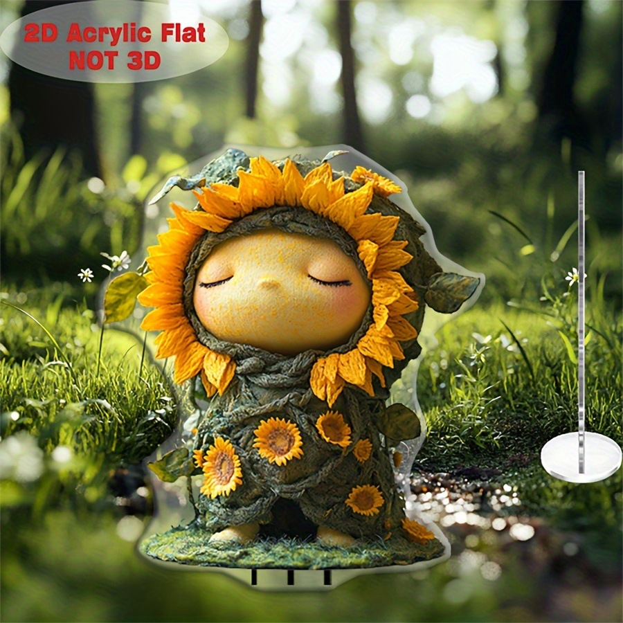 中庭、芝生、ガーデニング用の2D平面プリントひまわりの妖精の花の装飾インサート、家庭用