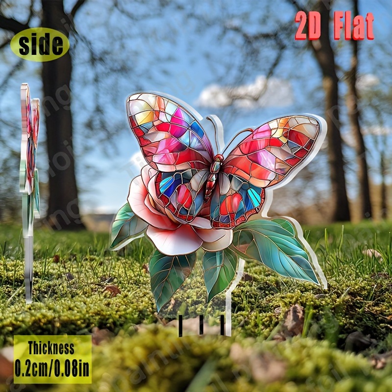 2D フラット、1 ピース ボヘミアン バタフライ & ローズ アクリル ガーデン インサート、アースインサート付き - 29.97x20