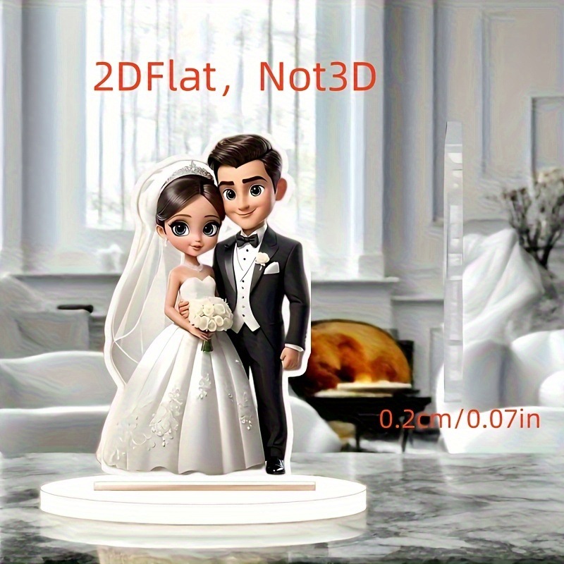 2D フラット、エレガントなアクリル結婚式の装飾、ロマンチックな新郎新婦 2D デスクトップ装飾、適用可能