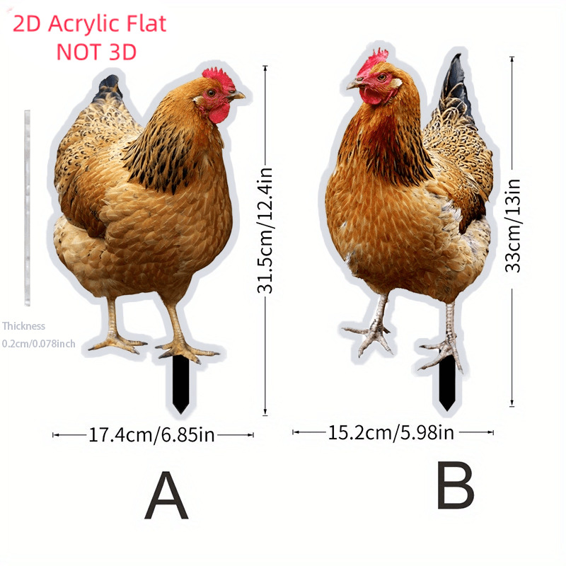 1 PC 2D フラットアクリル素朴なカントリースタイルアクリルチキンガーデンパイル - 屋外中庭の装飾