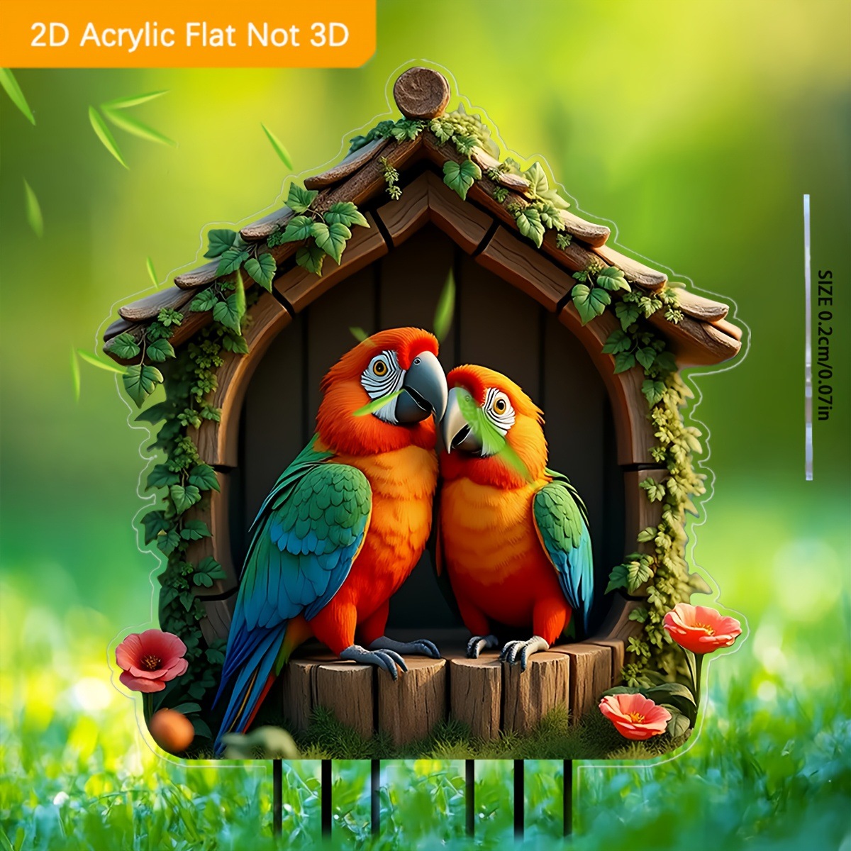 2D フラット ボヘミアン スタイル オウム 木製ハウス ガーデン デコレーション付き - 電気なしの防水屋外装飾
