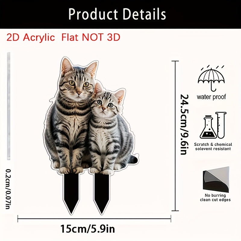 2D フラット、1 個の素敵な 2 猫ガーデングラウンドサインアクリル、多目的ボヘミアンフェスティバル