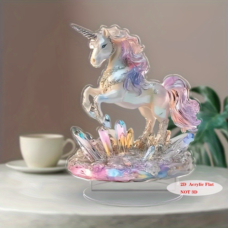 2D フラットアクリルユニコーンオーナメント - エレガントなホワイトピンクの毛デザイン、クラフトベッドルームデスクトップ