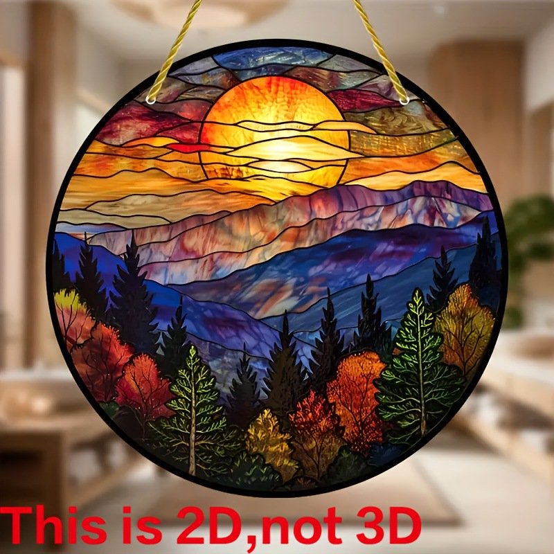 2D プレーン - [2D プレーン] 2D ポリマー サンセット マウンテン ウォール ハンギング デコレーション、8 インチ x 8 インチ カラフルなカラー