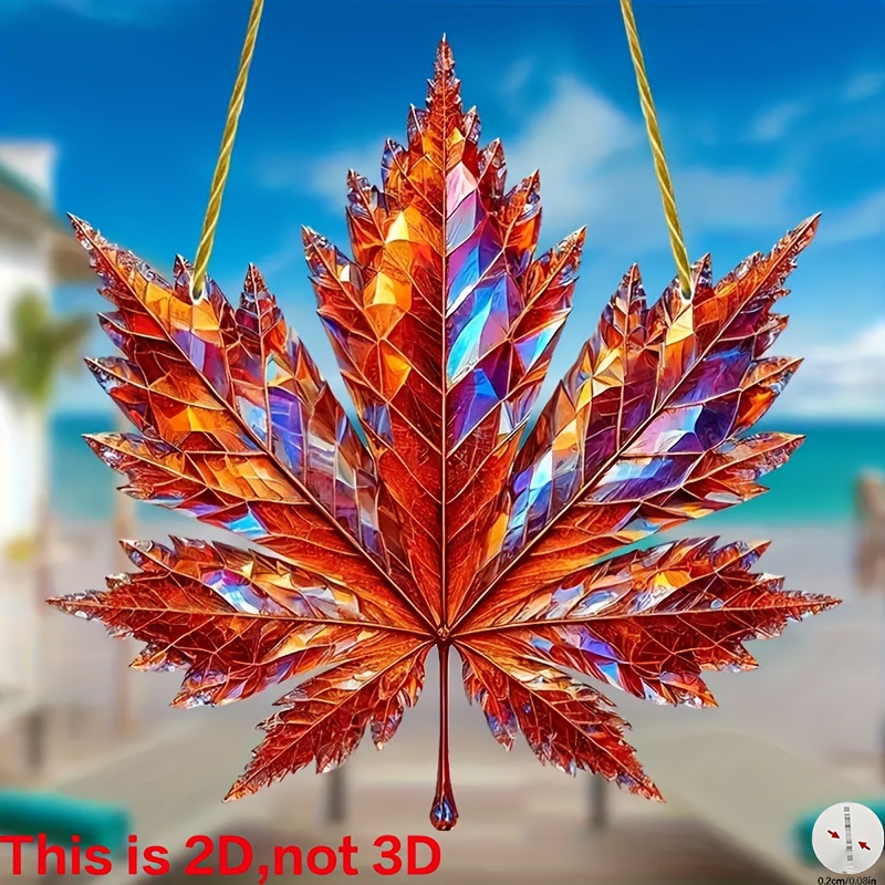 1 個ボヘミアンスタイル 2D フラットレッドオレンジブルーマカロンリーフペンダント - 植物テーマの家庭菜園