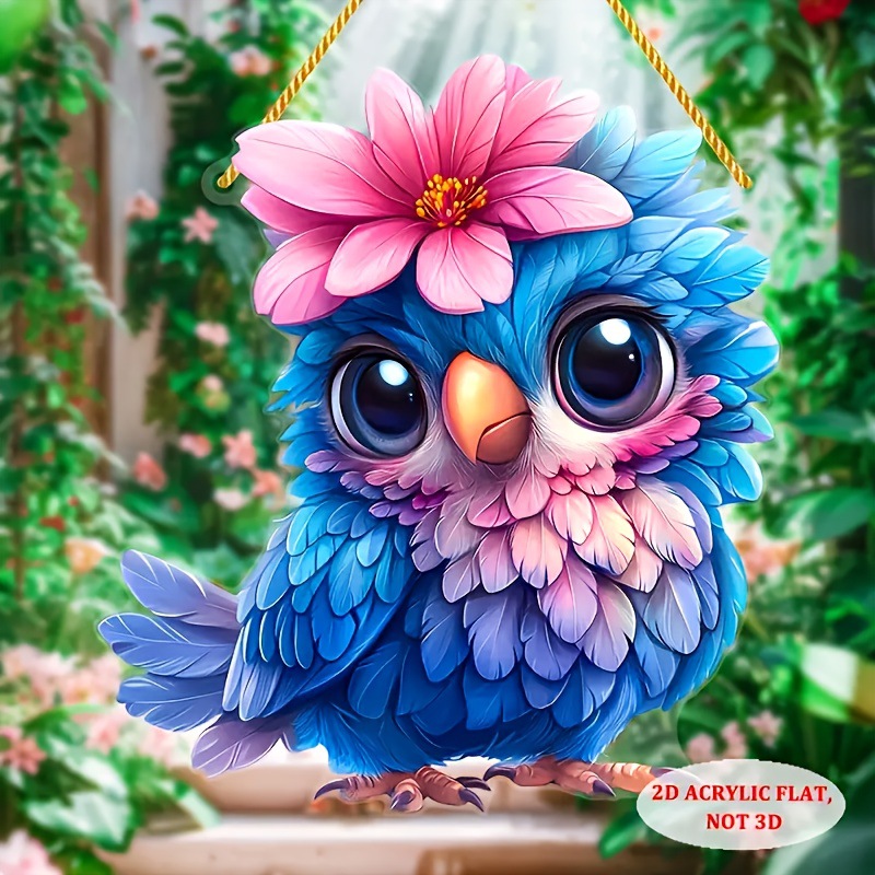 2D フラット、1 個 2D アクリルかわいいオウム、花の頭のペンダント付き - 鮮やかなブルーとピンクのデザイン、7。