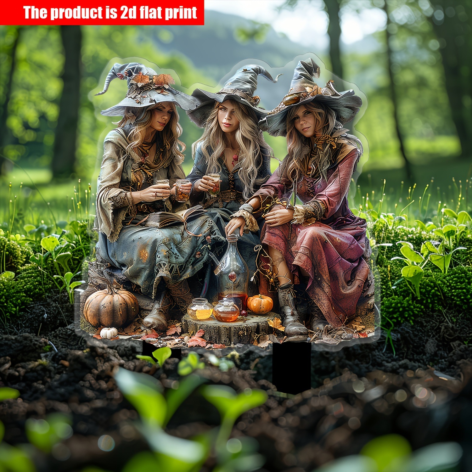 2D フラット、1 個、魔法のポーションを飲む 3 人の美しい魔女屋外装飾アート中庭